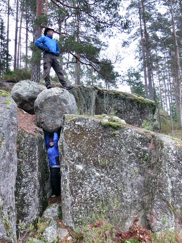 Osuimme paikalle sattumalta. Luolan (tai kalliosyvennyksen) maapohja on tasainen, joten se on erinomainen taukopaikka. Nuotiotakin siinä on poltettu. Jos jokin luola voi tuoda mieleen portin maanalaiseen temppeliin, niin se on tämä. Kuuluu ilman muuta Nuuksion hienoimpien kohteiden luetteloon!